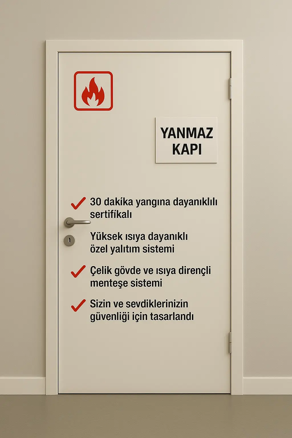 ->Yangın, beklenmedik ve tehlikeli bir tehdittir. Evinizi, iş yerinizi ve sevdiklerinizi koruma altına almak için yüksek standartlara sahip yanmaz kapılarımız en güvenilir çözüm ortağınızdır.